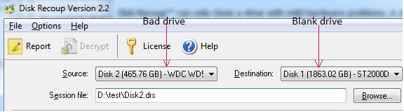 Nutzen Sie Disk Recoup™, um das fehlerhafte Laufwerk auf einem größeren leeren Laufwerk zu klonen.